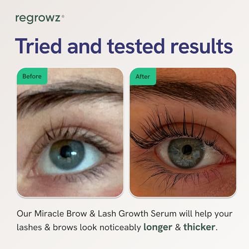 Transform your eyelashes with Regrowz Brow & Lash Serum—a powerful, dual-purpose eyelash serum and brow serum designed to deliver visible lash and brow growth. This advanced formula works as an eyelash-enhancing serum and an eyebrow growth serum, deeply nourishing hair follicles to support rapid growth, strength, and definition. Ideal for those seeking a proven lash serum growth solution, Regrowz helps achieve longer, thicker eyelashes and fuller, healthier brows with consistent use. Whether you’re dealing with thinning, breakage, or want to enhance your natural beauty, this professional-grade eyelash growth serum fits seamlessly into any skincare or makeup routine.