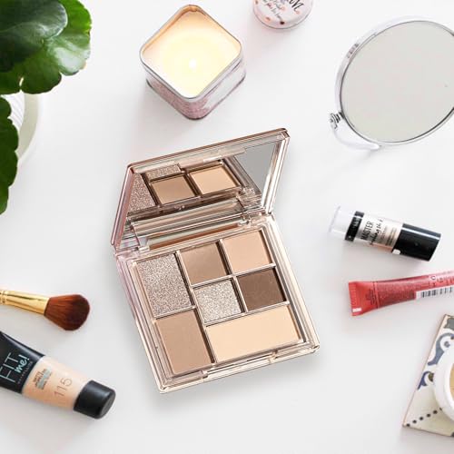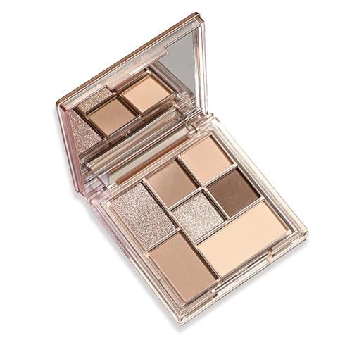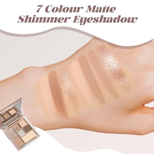 Nude Eyeshadow Palette with Mirror 7 Colour Matte Glitter Eyeshadow Brown Grey Nude Eyeshadow Earth Neutral Elf Eyeshadow Long Lasting Highly Pigmented Waterproof Shimmer Eye Shadow Pallets for Women