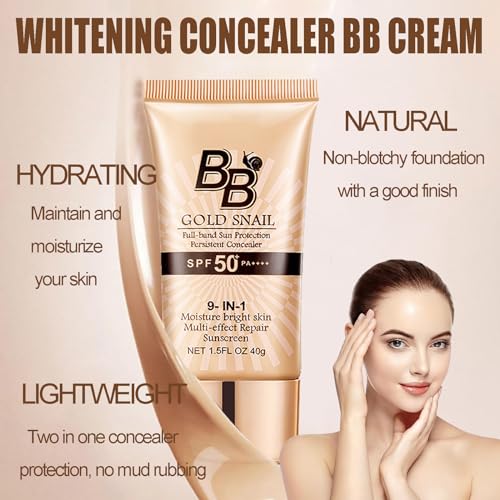 QUIWEN BB Cream Light & Medium, Tinted Moisturiser Face Women, SPF 50+ Gold Snail Sunscreen