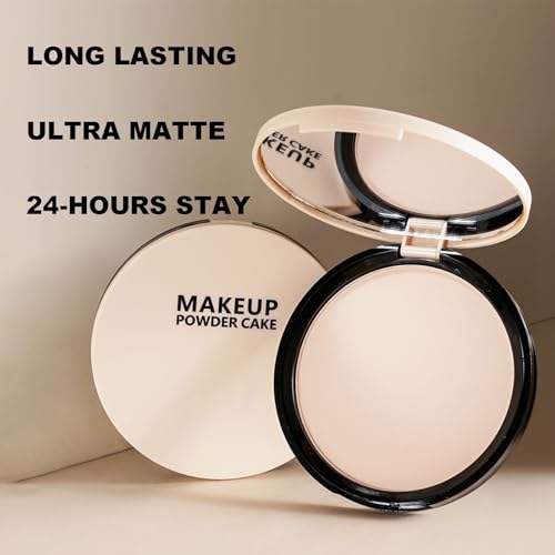 Setting Powder, Matte Pressed Powder with Concealer and Foundation, Long Lasting Waterproof Face Powder Compact, Oil Control Lightweight Face Makeup for Women, With Mirror & Puff