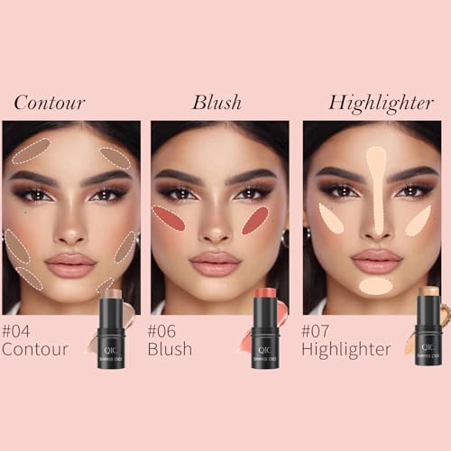 【 3-IN-1 Set】: This contour stick makeup kit includes a cream bronzer contour, highlighter, and blush stick,and a complimentary beauty brush, providing you with all the essentials for sculpting and enhancing your facial features.