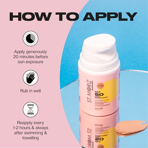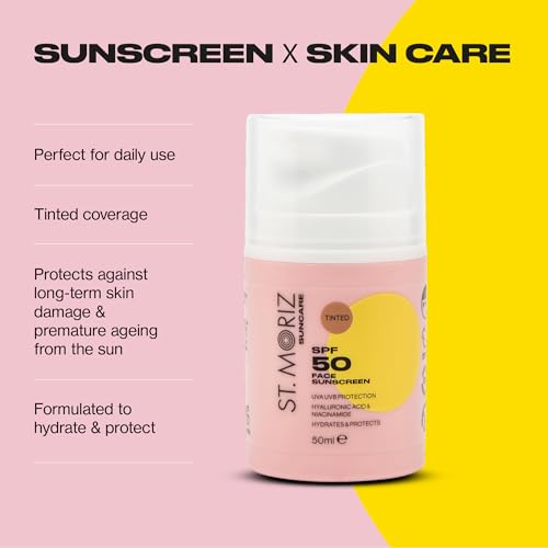 St Moriz Suncare SPF 50 Tinted Face Sunscreen | UVA & UVB Protection SPF 50 Daily Use Sunscreen Face Lotion with Tinted Coverage, Hyaluronic Acid & Niacinamide | Dermatologically Tested | Vegan | 50ml