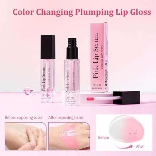 Pink Tinted Lip Plumper Serum – Natural Moisturizing Balm for Repair, Hydration & Fine Line Reduction,Pink Lip Serum