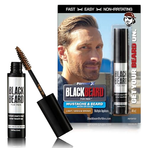 FAST, EASY APPLICATION. Simplify your mustache and beard grooming and look years younger in seconds, mateys, with patented Blackbeard for Men Formula X no-mix instant beard and mustache color. Blends seamlessly into your own natural color. Blend with a beard brush or a tissue to vary the color for a far more natural look than any dye. No drying time, no shower, no clean-up. Brush and go!