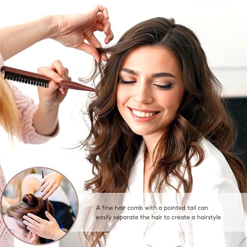 Boar Hair Bristles Brush Set Pulled Tail Brush Rat Tail Comb Hair Brush with Natural Boar Bristles Professional Brush with Wooden Handle Smoothing Hair Brush Beard Brush