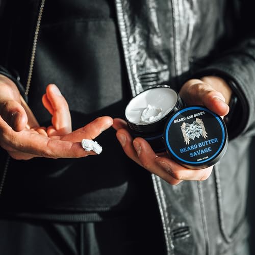 Beard and Bones – 50ml Beard Butter for Men | Shea Butter and Cocoa Butter | Creamy and Nourishing Beard Moisturiser | Choice of 2 Scents (Savage)