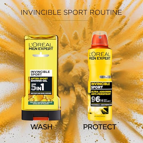 ![L'Oréal Paris Men Expert Invincible Sport 5-in-1 [Body, Face, Hair, Beard & Moisturise] Shower Gel for The Ultimate Fresh & Aromatic, Post-Workout Wakeup Call, 6 x 300ml](https://m.media-amazon.com/images/I/41WjuUaWucL.jpg)