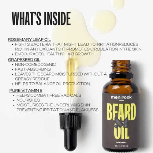 Men Rock Original Beard Oil, Promotes Beard Growth Whilst Moisturising and Hydrating Skin, Enriched with Rosemary, Cedarwood and Grapefruit 30 ml
