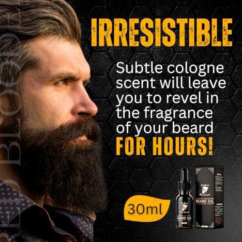 Red-Blooded Beard Oil For Men Cologne Scent – All Natural & Vegan With Organic Macadamia & Jojoba Oils (30ml) – Softens & Strengthens Beards And Mustaches