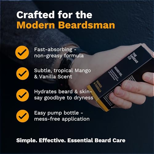 RICH, TROPICAL SCENT: A bold, fruity fragrance with notes of mango and vanilla, delivering a long-lasting aroma that keeps your beard smelling fresh all day.