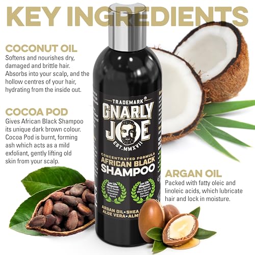 UNIQUE SHAMPOO: Contains Natural ingredients such as Pod Ash, which gives it a unique brown colour. It’s light in texture and lathers beautifully into a rich, white cream. Gnarly Joe African Black Soap Shampoo with Argan Oil, Shea Butter and Coconut Oil, is the ultimate moisturiser and softener for your hair.