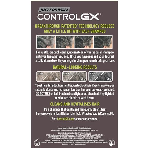Just For Men Control GX Grey Reducing Shampoo For Grey Hair, With Coconut Oil & Aloe Vera, New Improved Formula – All Shades, 118ml, packaging may vary