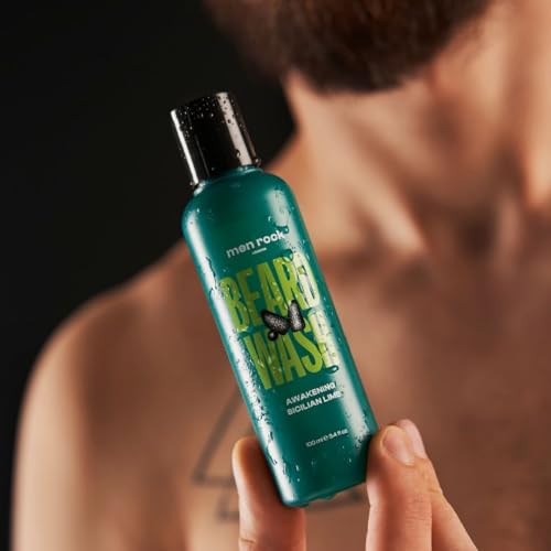 Men Rock Awakening Beard Wash – Hair Growth Stimulating, Moisturising & Softening, Skin Hydrating for Itch Relief, Zesty Sicilian Lime & Caffeine Scent, 100ml