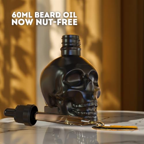 Beard and Bones – 60ml Beard Oil for Men | Nut Free | Natural Carrier Oils of Jojoba, Squalane and Sea Buckthorn Oil | Black Glass Skull | Choice of 6 Scents (Kreed)