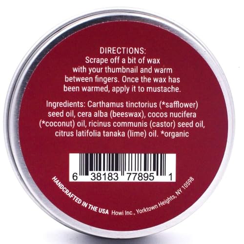 Safflower, castor, coconut oils and beeswax, our mustache wax moisturizes