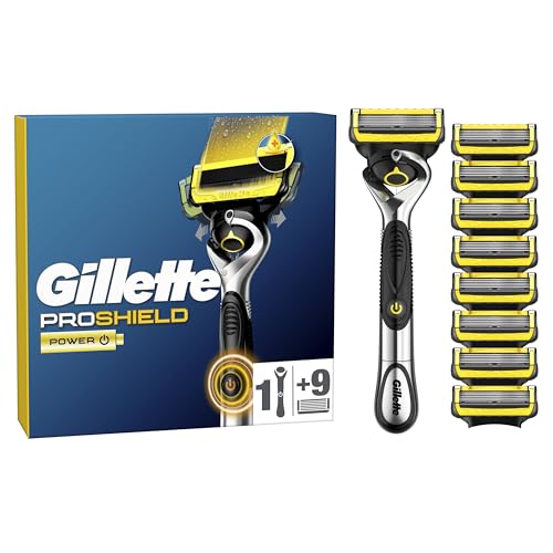 The Gillette ProShield Power razor for men provides the iconic Gillette shave precision with comfort and style. This men’s razor features a larger lubrication strip (vs. Fusion5) for comfort and glide designed for your shaving comfort. The Precision Trimmer on the back is perfect for styling facial hair, especially in hard to-reach areas. Our ultra-sharp, anti-friction razor blades ensure a smooth shave, fitting all Gillette 5-blade razor handles (excluding GilletteLabs). Proshield refills can last up to one month.