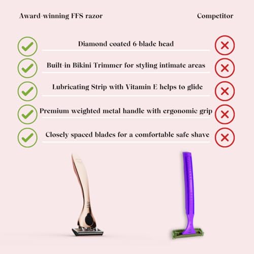 FFS Beauty Shaving Essentials – Premium Razor, Diamond-coated Titanium 6-Blade Cartridge & Shower Holder