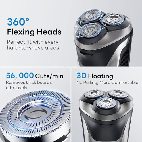 DOAO Electric Razor for Men, 2025 Upgraded Mens Electric Shavers for Men 2 in 1 Waterproof Cordless Rotary Beard Rechargeable Shaver for Face, Wet & Dry Use (A3-Pro)