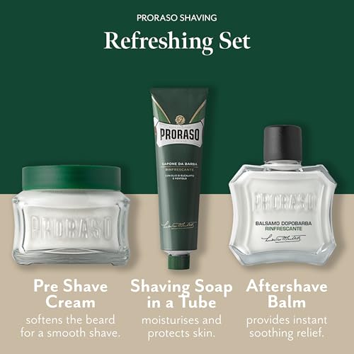 Proraso Vintage Selection, Refreshing Line (Trio Pack), Deluxe Shaving Kit with Pre Shaving Cream, Shaving Cream Tube, and Aftershave Balm, Made in Italy