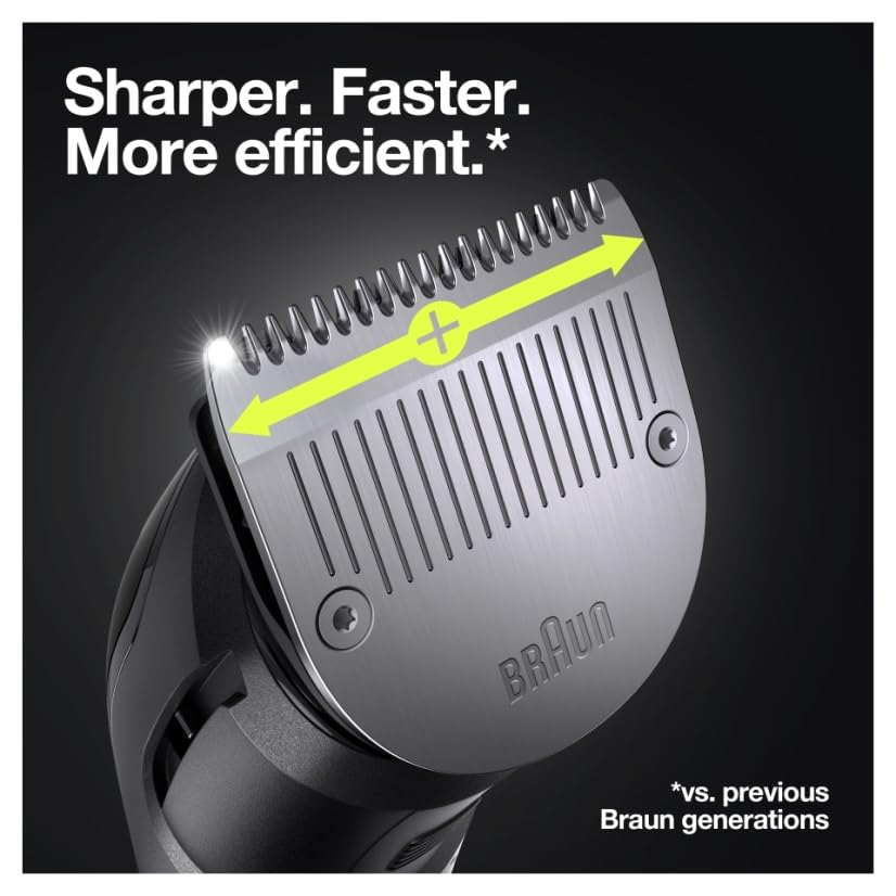 Sharper. Faster. More efficient: The trimmer head has a wider cutting area, cutting more hair in every stroke (vs. previous Braun trimmers). Get your look in fewer passes