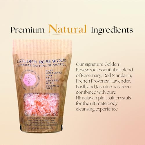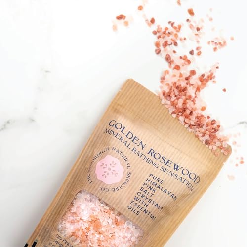 Pink Himalayan Bath Salt Crystals | 100% Natural, Mineral-Rich with Essential Oils | Muscle Recovery, Balances pH, Rejuvenates Skin | Detox, Stress Relief | Spa-Quality Bath Soak | Golden Rosewood