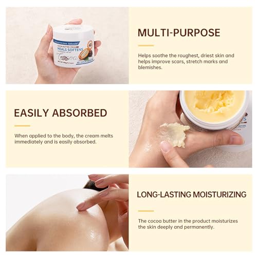 1.This cocoa butter cream improves dryness and roughness, deeply moisturises the skin and provides it with rich moisture and nutrients, leaving it hydrated and smooth.
