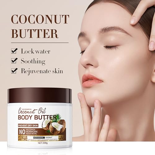 Coconut Body Butter 200g – Intense Moisturizer for Dry Skin, Enriched with Coconut Oil. Deeply Nourishes, Soothes, and Hydrates for Silky Smooth Skin. Daily Skin Care Routine,Create Silky Skin