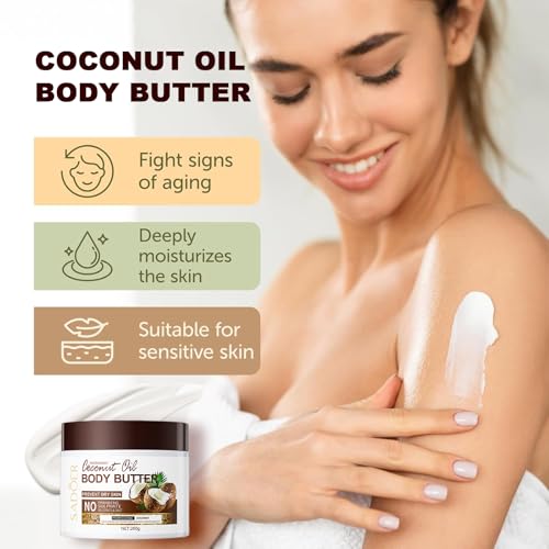 Coconut Body Butter For Women, Coconut Oil For Skin – Coconut Body Lotion, Body Skin Care Coconut Cream – Coconut Moisturiser Body Moisturiser For Dry Skin – Nourishes, Soothes, And Softens Dry Skin