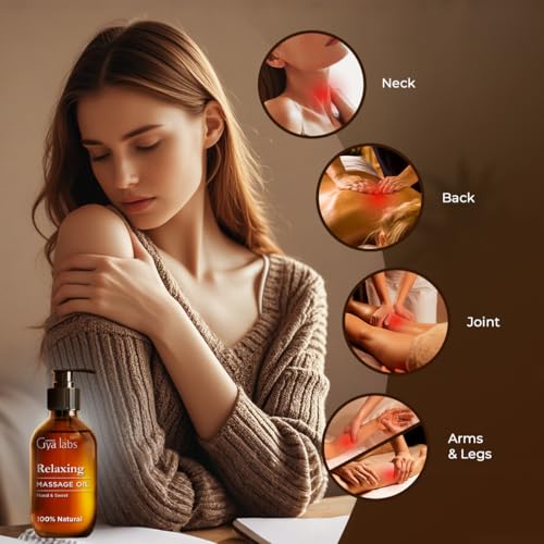 Gya Labs Relaxing Massage Oil for Sore Muscles – Spa Quality Sore Muscle Massage Oil – Warming Massage Oil Non Greasy & Body Massage Oil for Men & Women – 100% Natural (200 ml)
