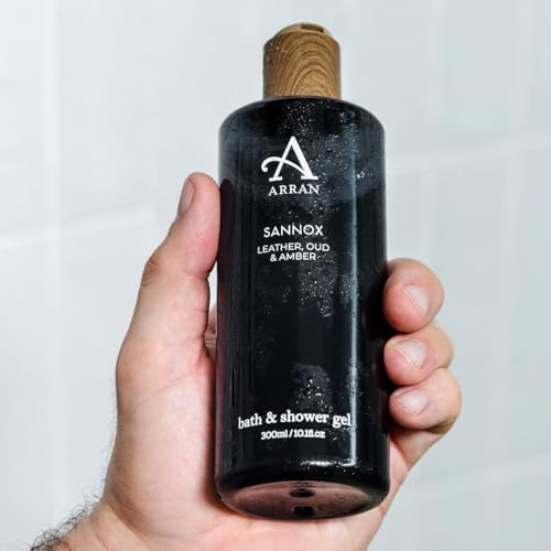 Arran Sense of Scotland Sannox Oud Body Wash (300ml) Luxury Scottish Shower Gel with Leather and Amber, enriched with Pro Vitamin B5 – Gift for Men & Women