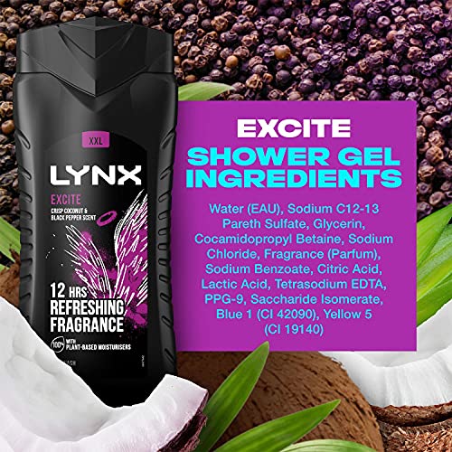 Lynx Excite Shower Gel Mens Body Wash, 225Ml 6 Pack