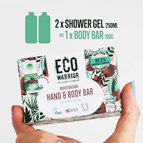 Eco Warrior Moisturising Body & Hand Soap Bar | Vegan, Natural, Cruelty Free, Eco Friendly, Plant Based | No SLS or Parabens | Richly Nourishing Coconut Blend made from Vanilla Essential Oils | 100g