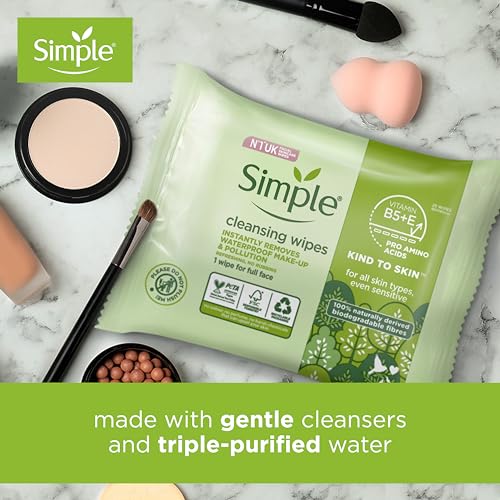 Effective as an eye make-up remover, Simple cleansing face wipes are made with triple-purified water, gentle cleansers, and multi-vitamins to lift impurities and remove even waterproof mascara