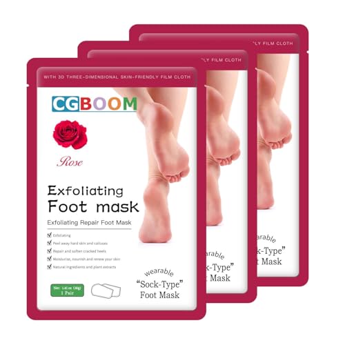 3 Pack Foot Peel Mask, Exfoliating Socks Calluses Remover, Aloe Moisturizing Feet Peeling Mask for Dry Skin, Cracked Heels, Foot SPA Socks for Women and Men (Rose)