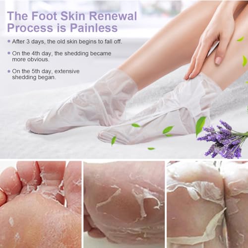 ✅【FOOT EXFOLIATING MASK】You will receive 4 pairs of exfoliating foot masks, sufficient quantity for daily use. Our lavender exfoliating foot mask removes hard dead skin, improves dry, rough feet and other problems, and gets baby-like softness, giving your feet a whole new feeling.