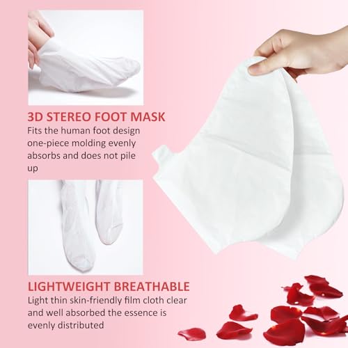 Rose Foot Mask – Foot Care Moisturiser Foot Exfoliating Sock – 3PCS Foot Peel Mask for Hard Skin – Foot Mask Peel For Callus Remove – Repair Cracked Heel – Foot Peel Mask for Women and Men