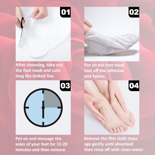【Soft Foot Mask】Our natural rose exfoliating foot peel mask removes hard dead skin and calluses, foot odour, effectively removes calluses, relieves chapped feet, promotes new collagen production and creates soft feet