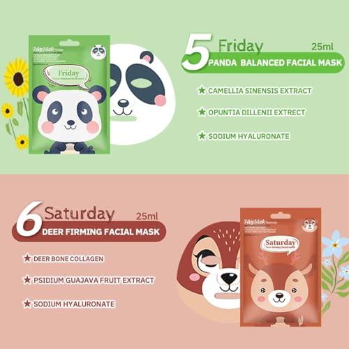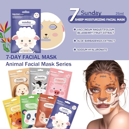 【Weekly Animal Mask Set】Turn face masks skincare into a joyful routine with our adorable sheet mask multipack! This 7-day face mask set features cute animal designs (panda, tiger, sheep & more) to make facial mask time fun while delivering deep hydration.