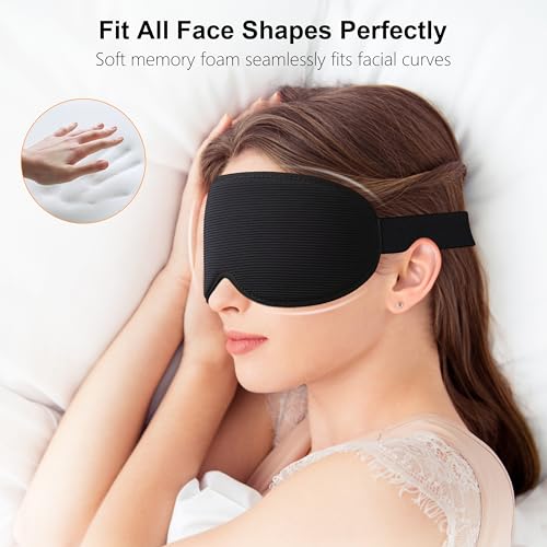 Gritin 100% Blackout Sleep Mask for Women & Men-Zero Eye Pressure Eye Mask for Side Sleepers, 3D Cutout Eye Movement Friendly, Ultra Soft & Comfortable Blindfold for Sleep/Travel-EarPlugs Included