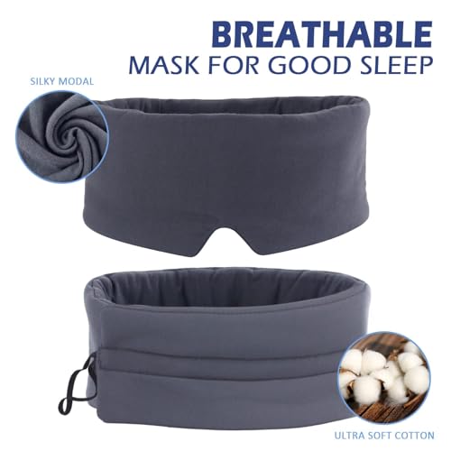 Mavogel Sleep Mask – Skin Friendly Modal Material & Light Blocking Sleeping Mask for Home/Flight/Shift Work, Handmade, Fully Adjustable Strap, Full Eye Covers for Women/Men Sleeping (Dark Grey)