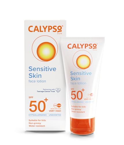 Calypso Sensitive Skin Face Sun Lotion | SPF 50+, Very High Protection, Hypoallergenic Sunscreen, Suitable for Kids, Water Resistant, 50ml