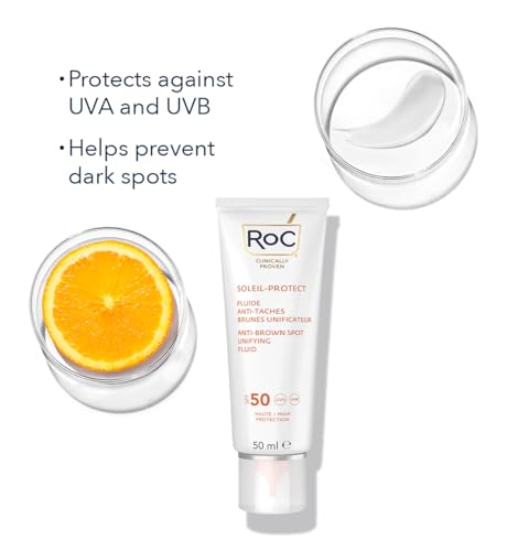 RoC Soleil Protect Sun Cream Anti Brown Spot Unifying Fluid SPF50 | Daily Sun Cream with Vitamin C, Moisturiser for Face | 50 ml