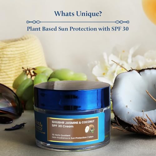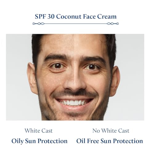 Blue Nectar Coconut Face Cream with SPF 30 Sunscreen for Men | Plant Based Oil Free Moisturizer for Face with Vitamin E | Brightening Sunscreen for Oily, Dry & Sensitive Skin (16 Herbs, 50g)