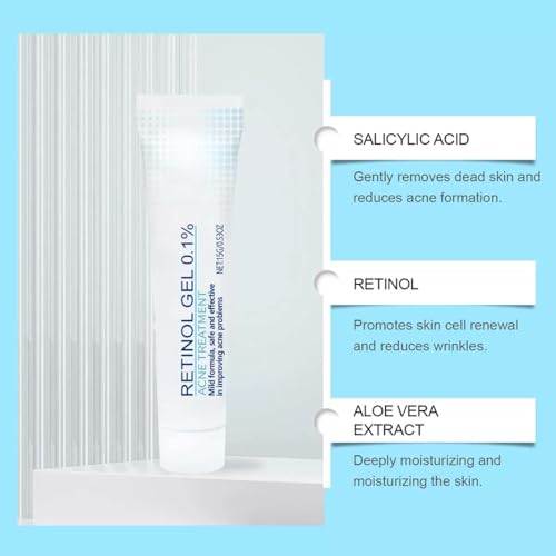 Retinol Gel,Retinol Gel for Face, Retinol Acne Treatment Gel & Skin Soothing Cream,Anti-Acne Moisturizer with Retinol, Spot Treatment for Acne-Prone Skin, Oil-Free,Non-Comedogenic