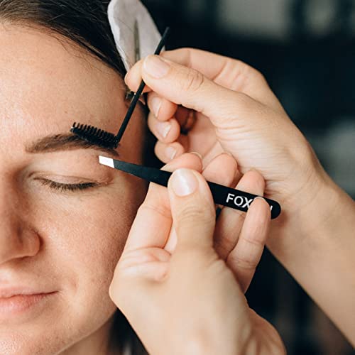 Foxian Tweezers for Facial Hair Women – Stainless Steel Eyebrow Slanted Tip for Accurate & Precise Grooming of Eyebrows Professional Tweezers for Men