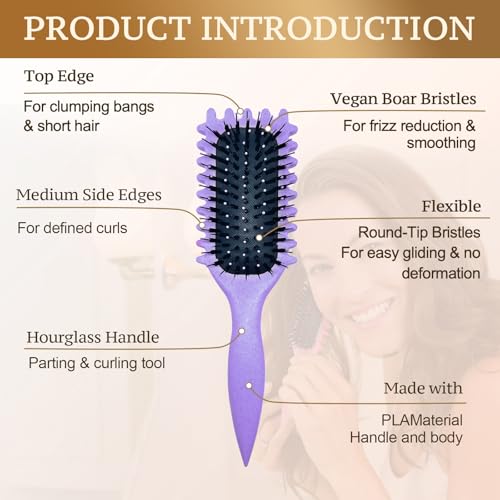 【Vegan Boar Bristles & Cleaning Claw】Made with vegan boar bristles, the Bounce Curl Brush enhances curl definition, smooths cuticles, and reduces frizz for both straight and curly hair. The included cleaning claw removes trapped hairs with ease, preventing buildup and keeping your Curly Hair Brush in top condition.
