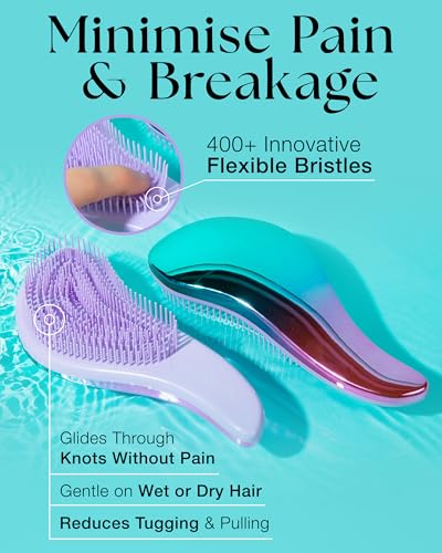 Quick & Easy Brushing – The innovative design of our detangling brush with over 400 flexible bristles and ergomic handle for ultimate control gently separates tangles & knots instead of pulling & tugging, minimizing damage