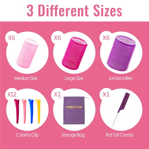 Hair Rollers Set 40 PCS, PandyCare Hair Rollers For Long & Short – No Heat, Hair-friendly, Natural Effect, Includes 18 Rollers (1.73+1.41+0.98 inch), 20 Clips,1 Rat Tail Comb 1 Storage Bag