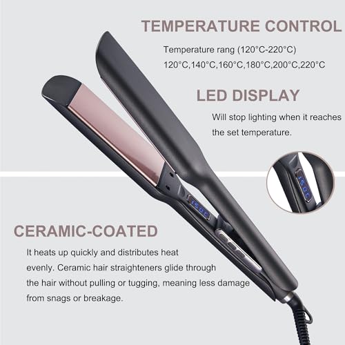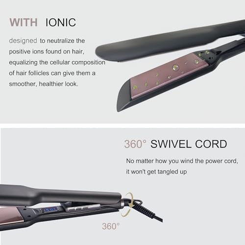 Ionic Hair Straighteners for Women,5.7cm Ceramic Wide Plate 120℃ to 220℃ LED Digital Display Side Temp Button Lock and Unlock Hair Straightener 2m 360 ° Swivel Cord for Short Medium Long Hair