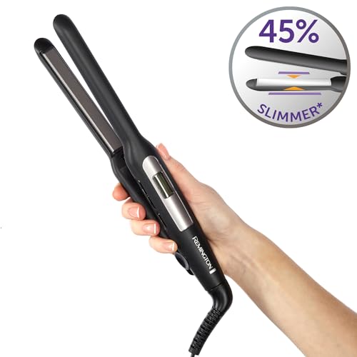 Remington Hair Straightener with Extra Slim Plates (for Short Hair, Pixies, Bangs, Small Curls, Advanced Ceramic Coating, Digital Display, 9 Settings 150-230°C, Fast Heat up) S5515